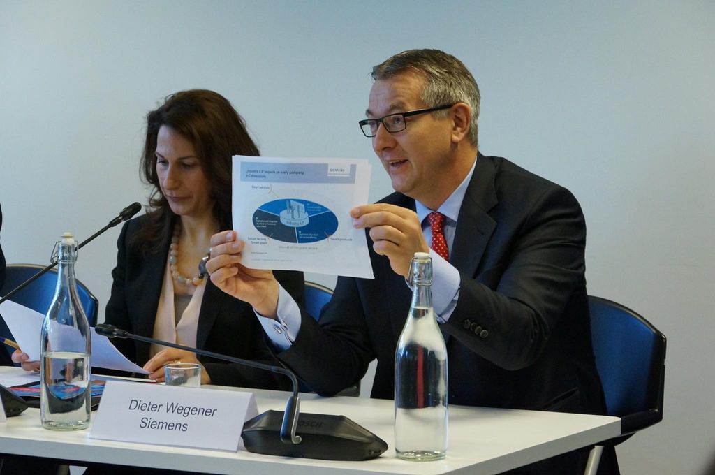 Siemens opened the workshop by explaining that the impact of digital transformation on manufacturing, that takes several forms (see the attached presentation) digitisation and integration of horizontal and vertical value chains, where each physical value chain gets in parallel its “digital twin”; digitisation of product and service offerings (Smart Products); innovative digital business models (Smart Services). In many ways it combines the resources of the shop and office floors. More broadly, the digitised economy merges physical and virtual worlds and makes the most of their respective assets in all sorts of fields: energy, mobility, health, etc. This development is global, as illustrated by the cooperation between Industry 4.0, other national initiatives, AIOTI and IIC (Industrial Internet Consortium). Ultimately, the Internet of Things and Services will connect everything at all times. Ever-increasing flexibility will keep reducing time-to-market in the best interest of industry and customers.