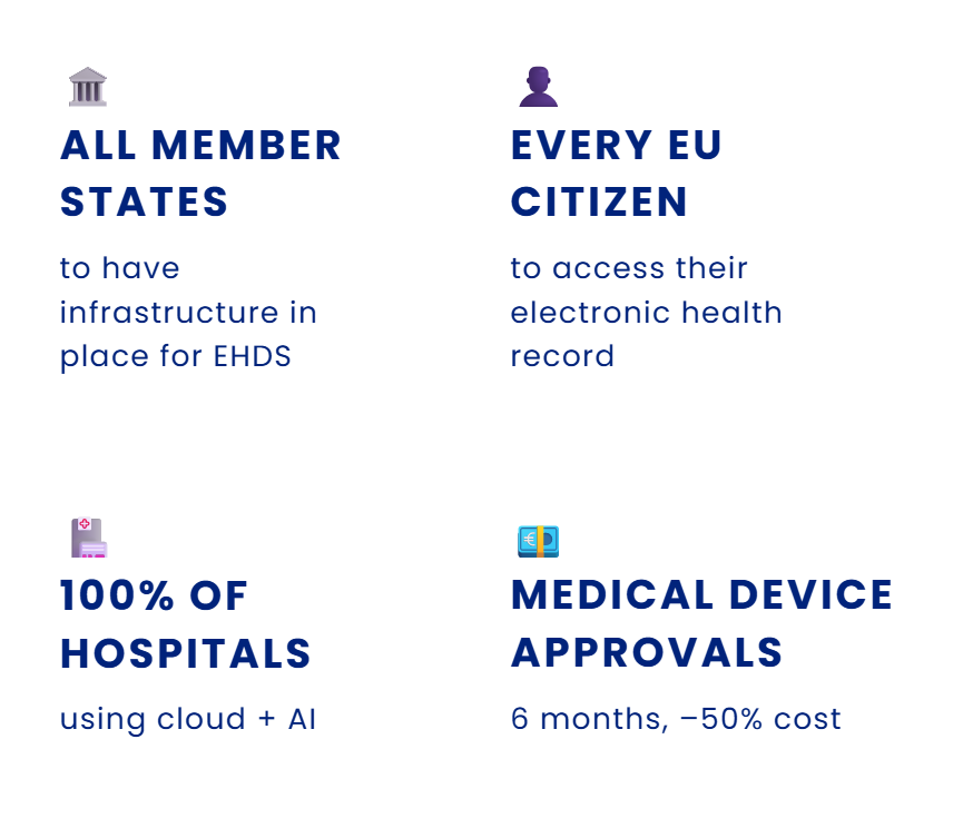 • All Member States to have all infrastructure in place to meet the requirements of the EHDS framework.
