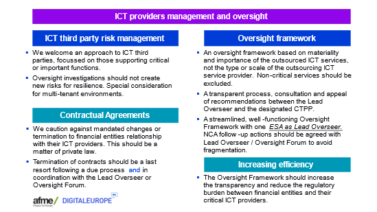 Furthermore, they stressed that “we need a framework that continues to allow institutions to adopt technology and that is risk-based” and that “the automatic termination of contracts is not a proportionate way to address the issue of oversight”, in fact “automatic termination is not proportionate; it introduces legal uncertainty and it is bad for investment.”