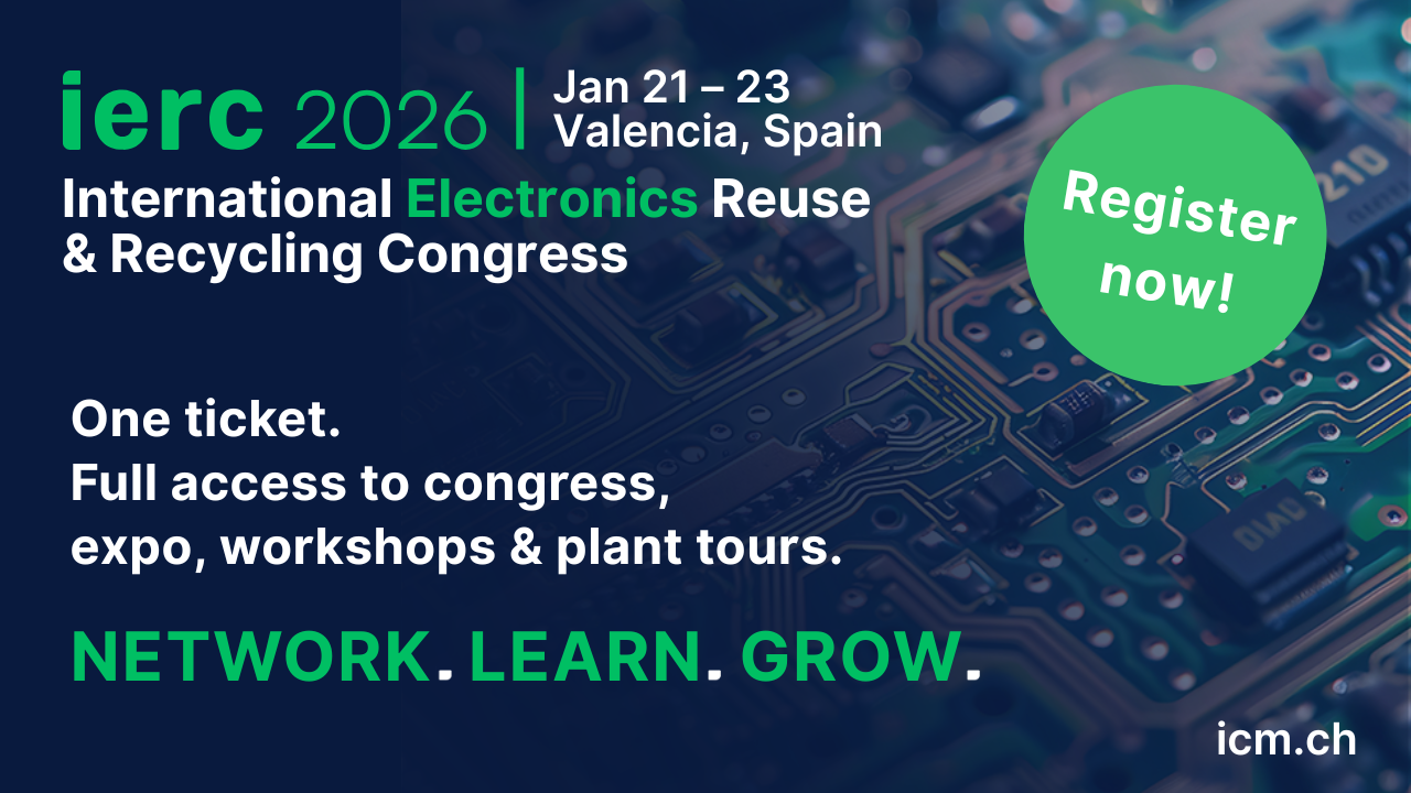 Valencia, 8 January 2026. The International Electronics Reuse and Recycling Congress, IERC 2026, will open in the Palacio de Congresos in Valencia on 21st January 2026. The congress, organised by ICM, the international leader in circular economy congresses, brings together the most influential actors from the entire electronics recycling value chain every year to discuss the key