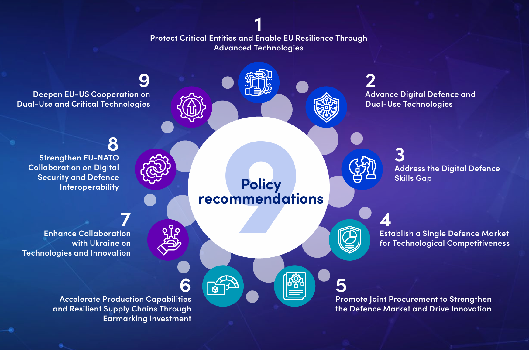 • Secure stronger digital investment and funding targets in EU and NATO defence budgets;